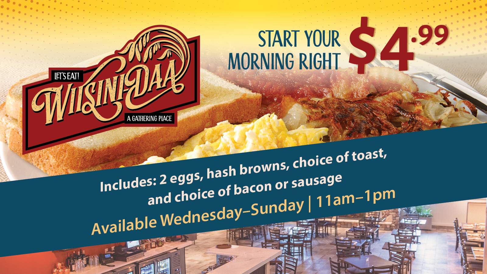 Enjoy a classic breakfast at a classic price – Only $4.99!