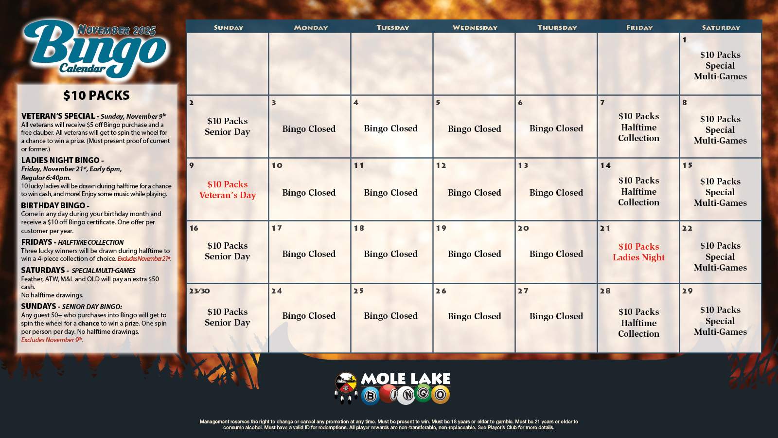 Ask a Bingo Attendant for more information or call 715-478-7514.