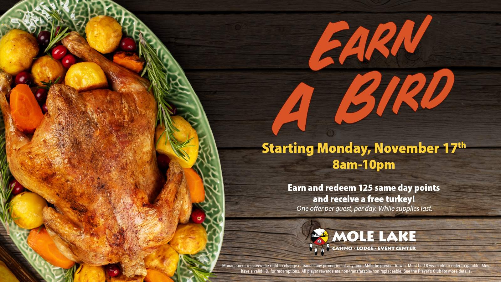 From 8AM – 10PM, earn and redeem 125 same-day points and receive a free turkey! Then, come back and do it again the next day!