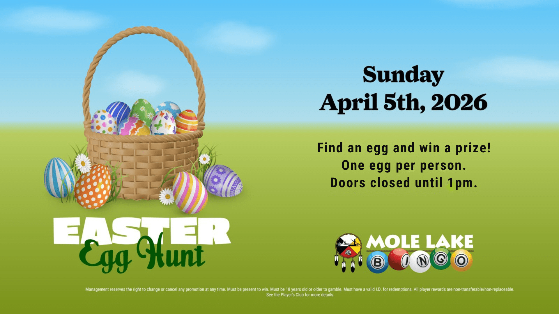 *One egg per person. Doors closed until 1PM. Management reserves all rights.