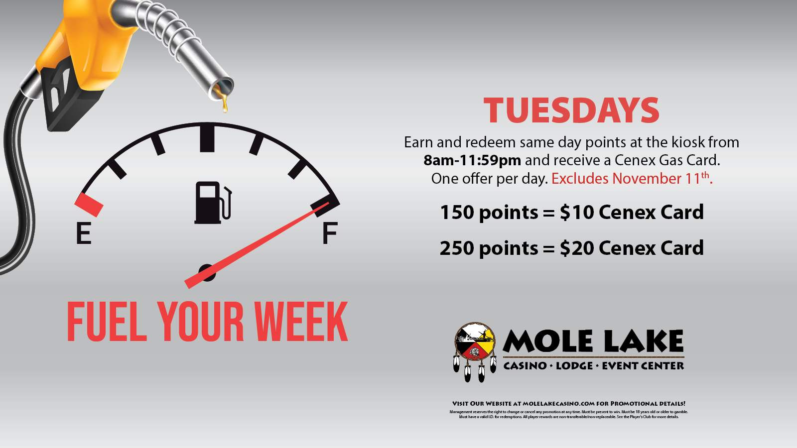 Mole Lake Casino is more than just great games and hot casino action. It's your complete entertainment destination! Mole Lake Casino, Lodge & Event Center is located just seven miles south of beautiful Crandon, Wisconsin, and offers all your favorite slot machines, dining, lounges, and also first class accommodations in our 75 room Lodge, which includes spacious suites, a fitness center, swimming pool and a full service Event Center. While you're here, be sure to enjoy our mouthwatering dining options, and also relax and enjoy our Lounges for your favorite cocktail.