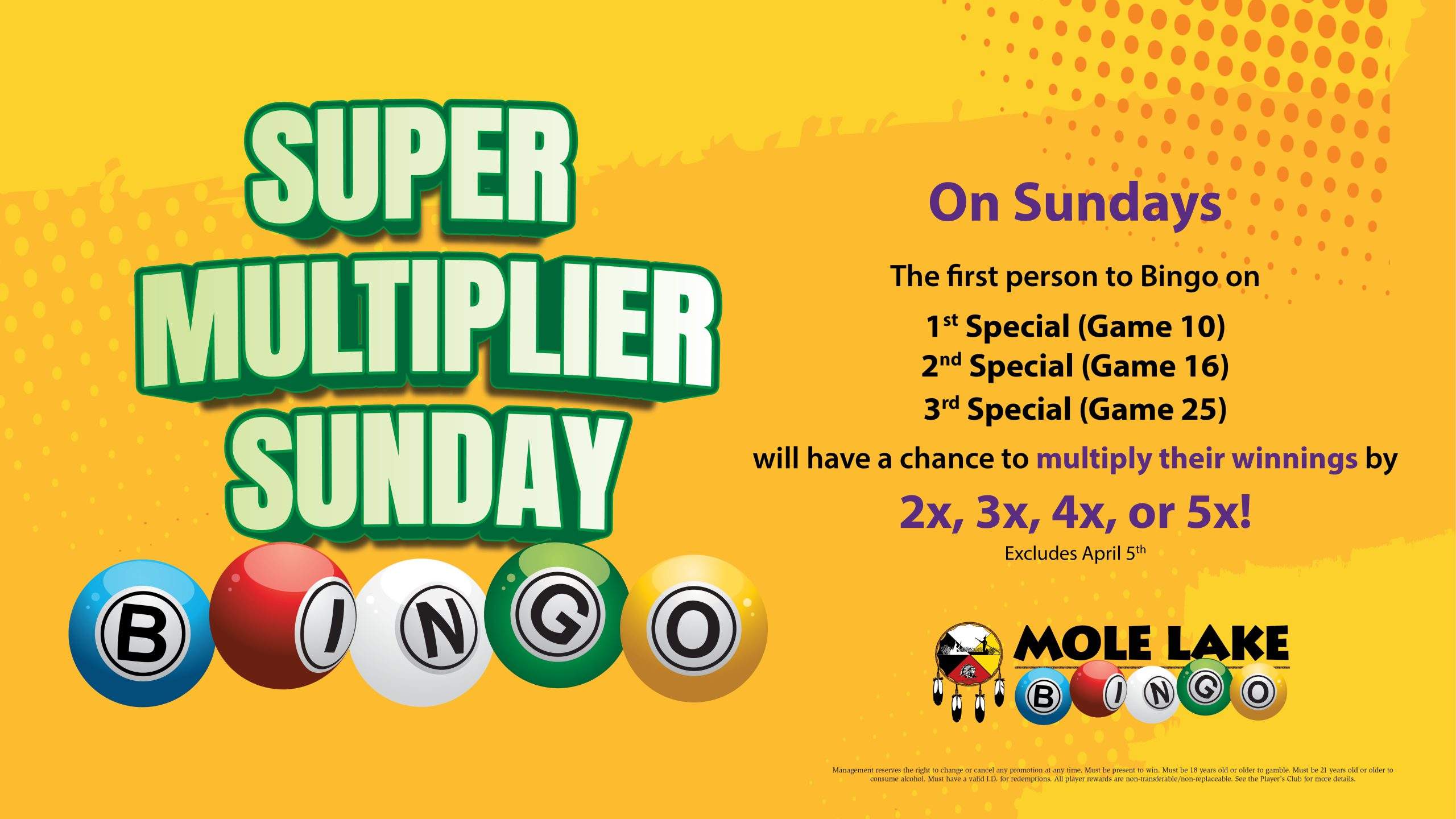 The first person to Bingo on certain special games will get a chance to multiply their winnings by 2X, 3X, 4X, or 5X!